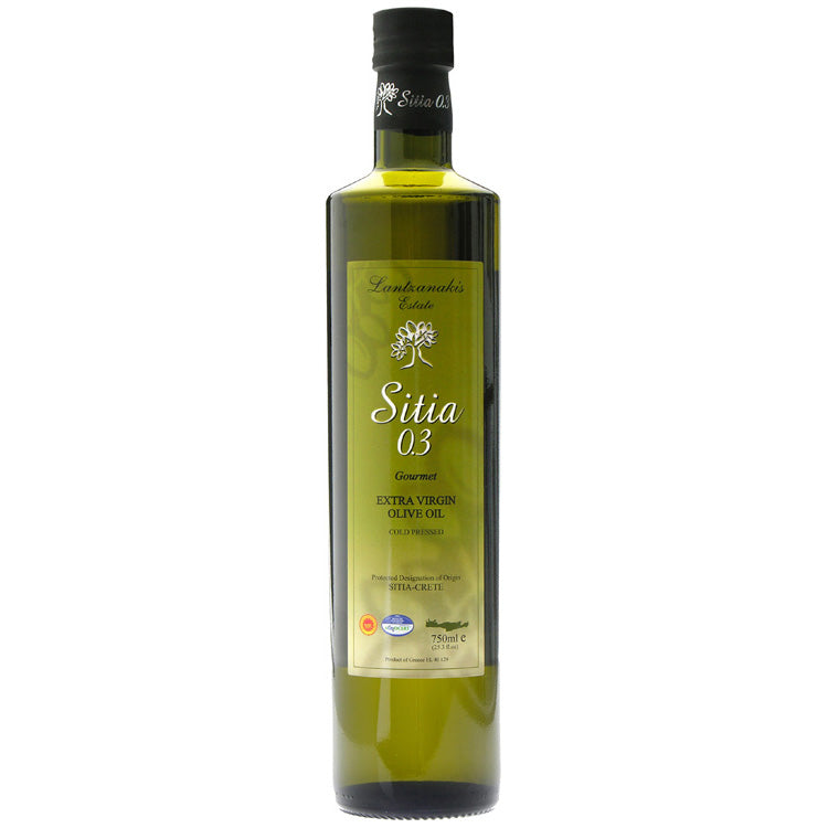 Sitia PDO 0.3 Extra Virgin Olive Oil defines the special and unique quality attributes of color, flavor and aroma. It has a free acidity level below 0.3% which makes it ideal for dressings and dips.